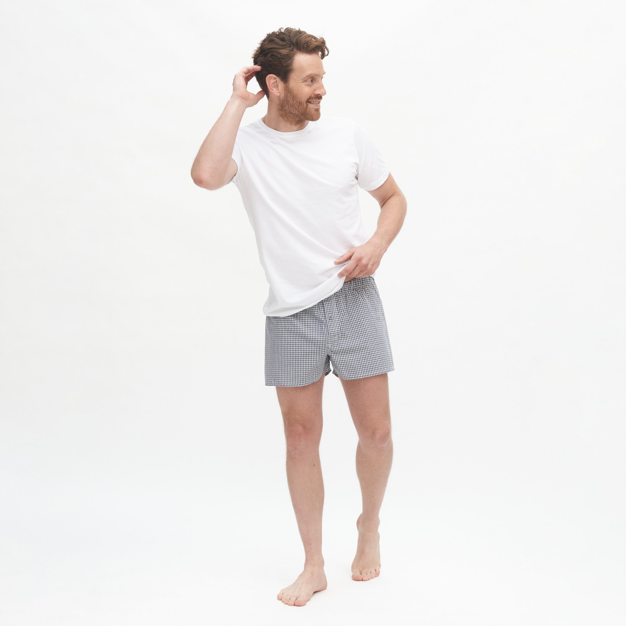 Die Herren Boxershorts hat einen Eingriff mit kleinem Knopf und einen mit Stoff eingefassten Gummibund für den perfekten Sitz.