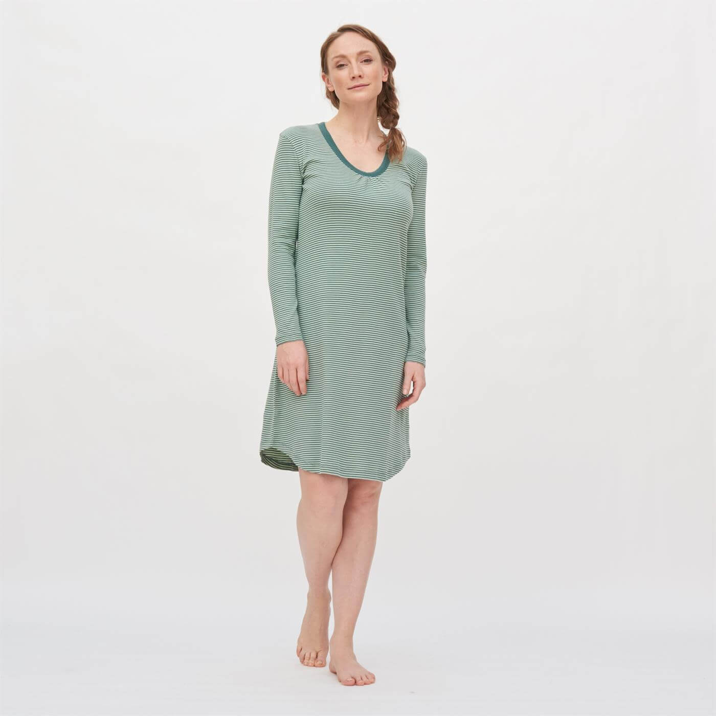 Modernes Damen Langarm Nachthemd aus feiner Bio Baumwolle